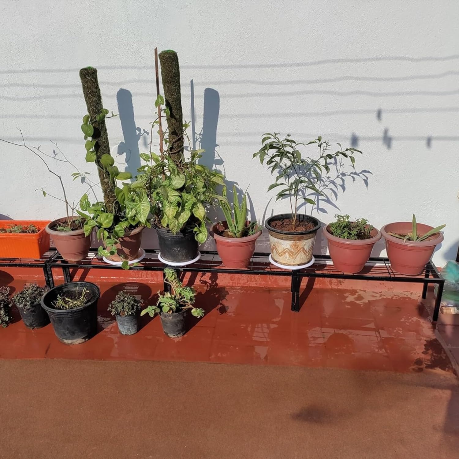 Stand for Balcony Indoor -Outdoor Indoor Plants (24 X 8 In) (Set of 4) Net Quantity (N): Pack of 4 Product Breadth: 8 In Product Length: 24 In Product Height: 5 In Rectangular Long Stand is made up of rust free and high-quality metal. It is suitable for heaviest pots and baskets. Hanging bracket looks perfect in outdoor and indoor setting and adds charm to your surroundings. Adding elegance and beauty to your home and garden. We have advantage of In-house facilities for making variety of stands and hanger for home and Gardening.